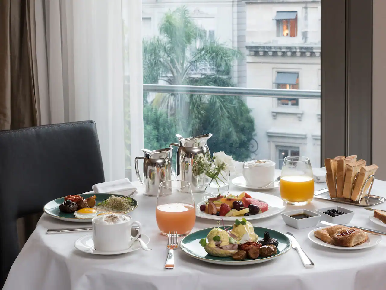 Los Salones del Piano Nobile: With beautiful outside terraces, it’s the perfect space to enjoy a traditional Five O’Clock Tea with delicious pastries prepared by a talented team, led by our Pastry Chef, Paula Maroni. Guests delight themselves in these magnificent rooms with breakfast à la carte, small dishes, elegant snacks and international cuisine throughout the day.